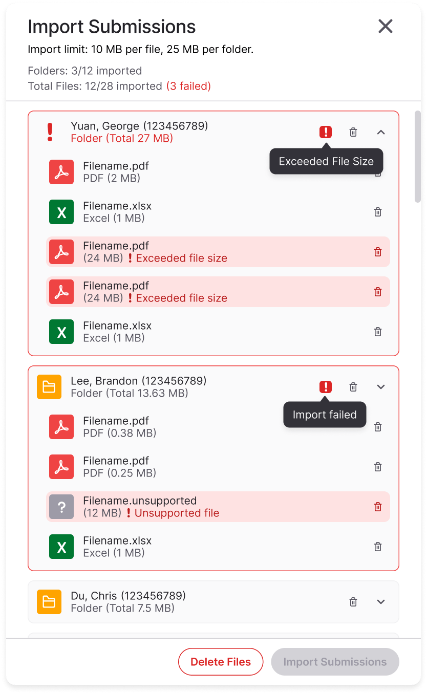 We will also detect which files we cannot support so there is no guessing game when imported files don’t match actual student submissions.