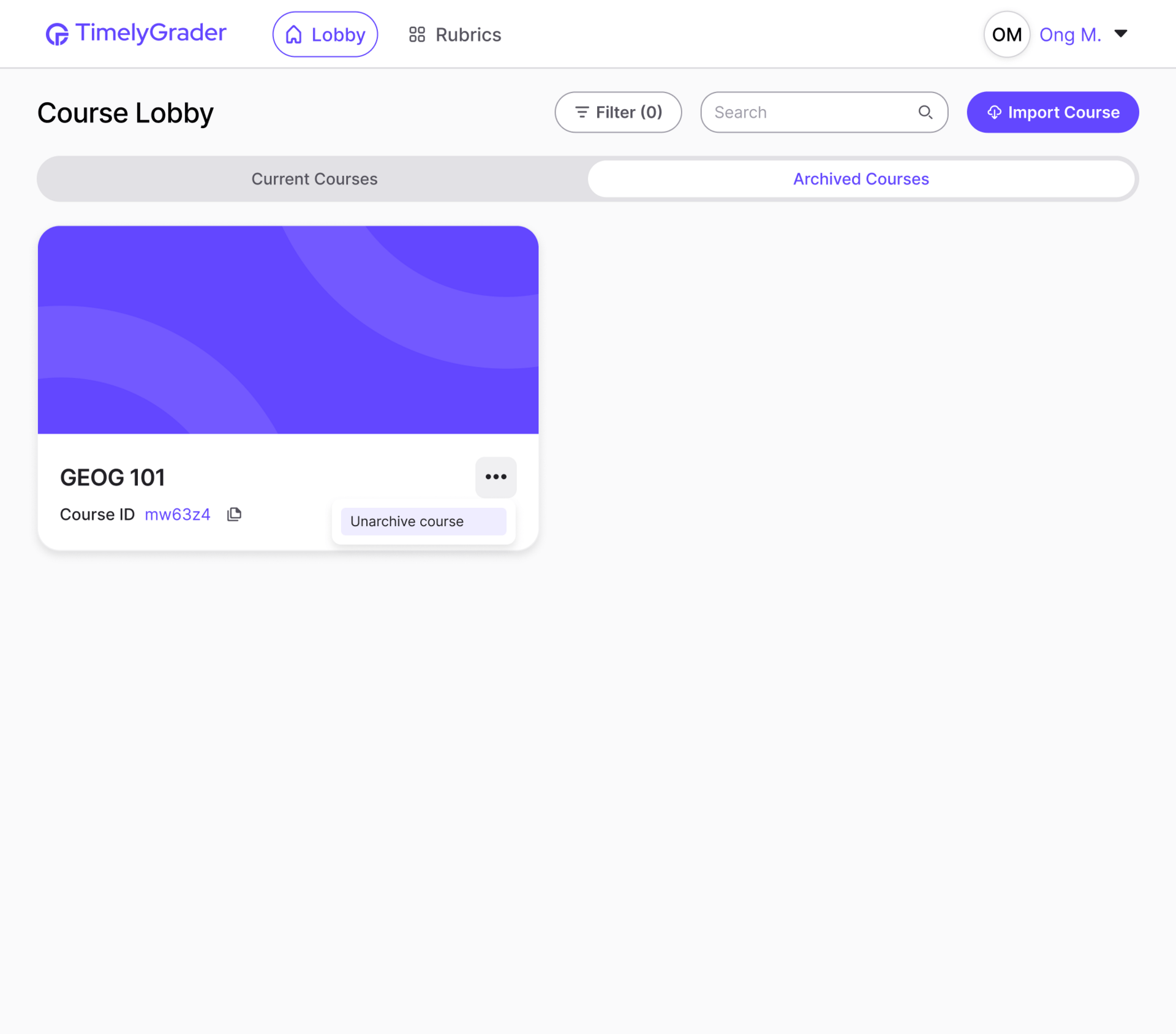 Course Lobby page and archiving courses